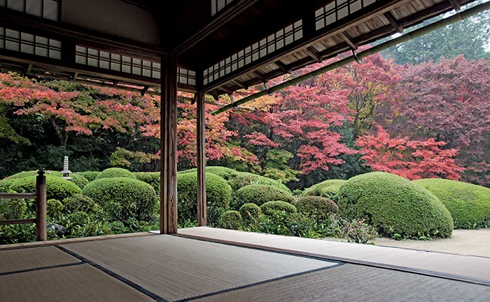 Carefully positioned gardens employ shakkei, or the art of borrowed scenery, and 'unenterable' ones are pathless and to be regarded or partly imagined from certain viewpoints. Dry landscape gardens (karesansui) like that at Ryoan-ji use no water, just rocks and raked gravel. Their emptiness is a significant absence